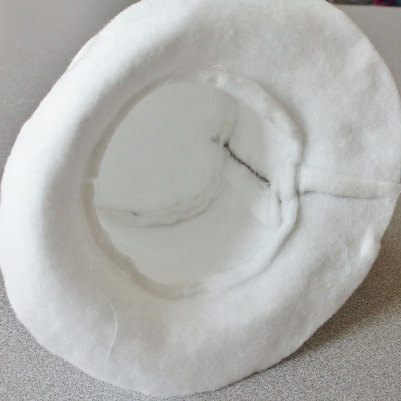 Once the pieces were sewn together (I used a long machine basting stitch), I steamed the whole hat and shaped the brim to turn up on one side. I plan on picking up some oven gloves that allow dexterity as I did find the steam got a bit hot. The Fosshape was never too hot to handle but my fingers got exposed to the hot steam. So be very careful.